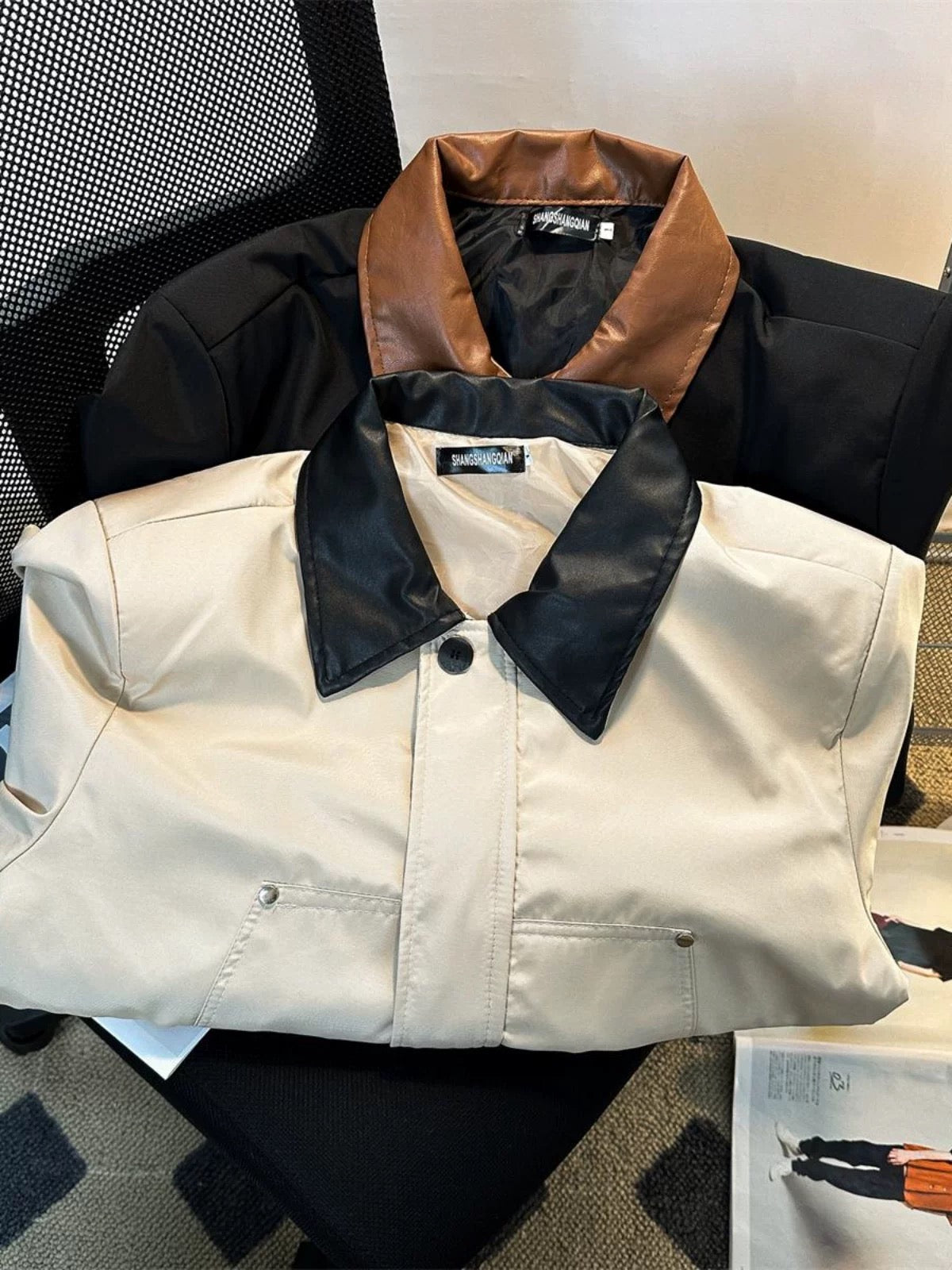 Esta jaqueta oversized em tom bege claro destaca-se pelo contraste marcante da gola preta, criando um visual moderno e elegante. Perfeita para quem procura uma peça versátil que combina estilo casual com sofisticação.