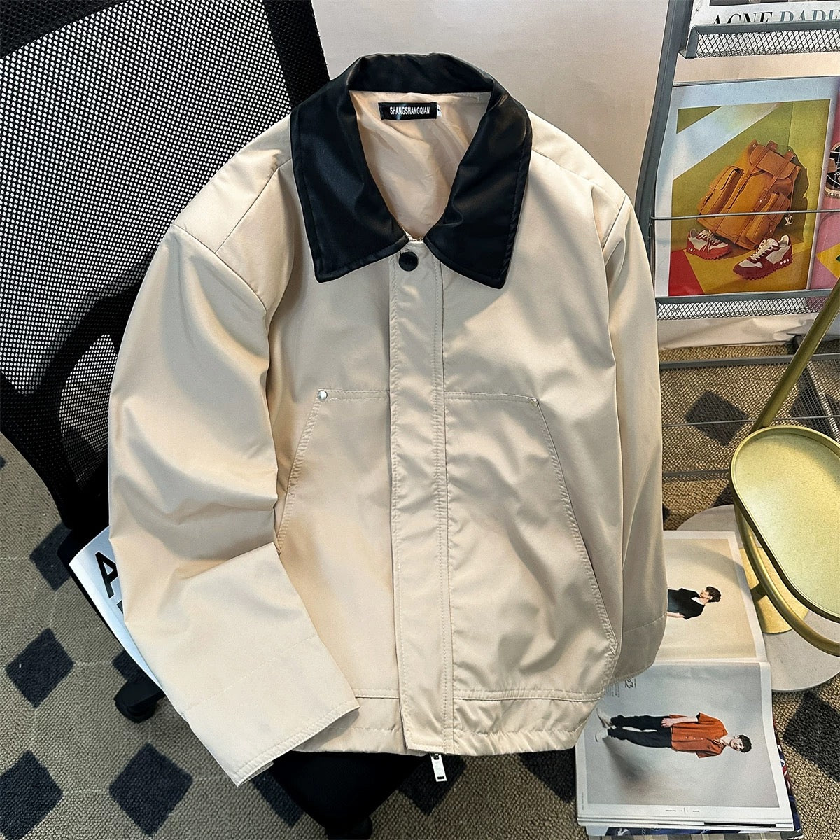 Jaqueta Oversized Bege com Gola Preta Contrastante